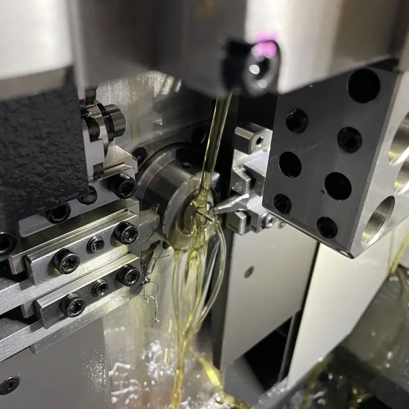 前期準備完成后,就可以通過設(shè)計好的零件加工工藝進行調(diào)車。機芯零件的加工精度是以μ級來衡量的,1μm相當(dāng)于1mm的千分之一,而人的頭發(fā)絲一般在0.04mm~0.05mm之間,可想而知,調(diào)整工在調(diào)車過程中的復(fù)雜程度。調(diào)整工在調(diào)車過程中需要先進行刀具、夾頭、導(dǎo)套以及附件的安裝,然后進行刀具中心的校正,接下來進行對設(shè)備的調(diào)試,最后根據(jù)車落工藝圖紙的尺寸以及技術(shù)要求,對零件進行調(diào)整,經(jīng)過3天到7天的一個周期,機床設(shè)備運行穩(wěn)定、零件尺寸浮動不大后,調(diào)整工就可以正式交付給操作工進行零件的批量生產(chǎn)了。