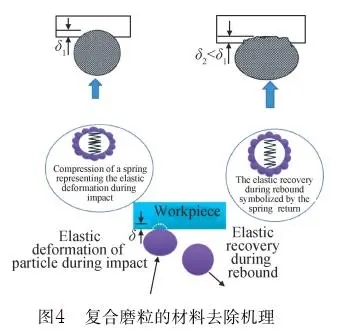 核殼型復(fù)合磨粒的內(nèi)核為大粒徑的磨?;蚧衔?,外殼為通過化學(xué)方式粘結(jié)于內(nèi)核表面的小粒徑磨粒層或化合物層。在研拋過程中,核殼型復(fù)合磨粒的核與殼表現(xiàn)出物理和化學(xué)方面的協(xié)同效應(yīng),更有利于提升研拋質(zhì)量。首先,復(fù)合磨粒內(nèi)核為較硬的大粒徑磨粒,主要負(fù)責(zé)支撐整體結(jié)構(gòu);外殼為較軟的小粒徑磨粒,主要負(fù)責(zé)工件表面材料的去除。相比單一硬度的實(shí)心磨粒結(jié)構(gòu),該復(fù)合磨粒具有“內(nèi)硬外軟”的結(jié)構(gòu)特點(diǎn),更有利于提升磨粒的研拋性能。